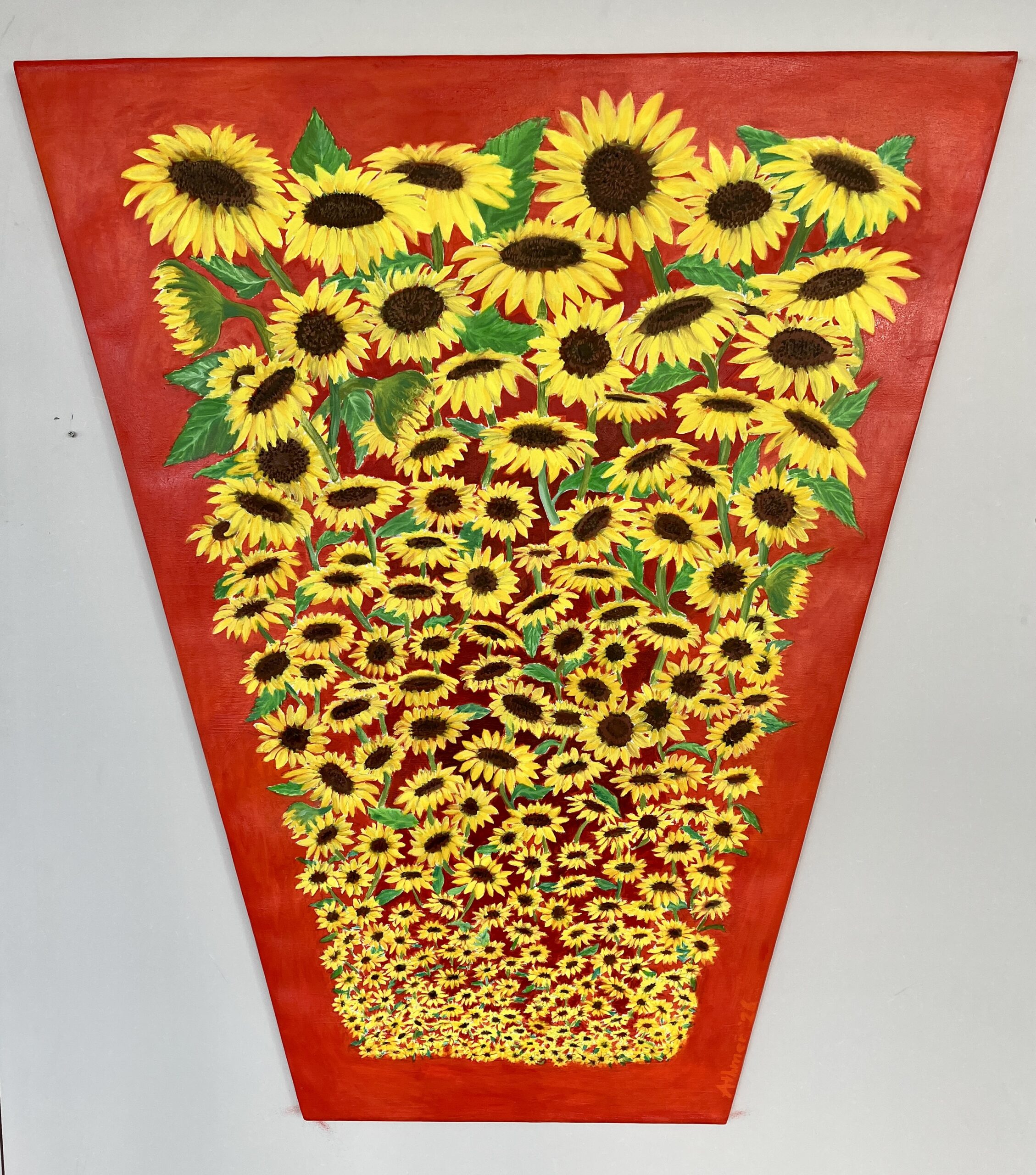 Sunflowers painted in reverse perspective. SOLD